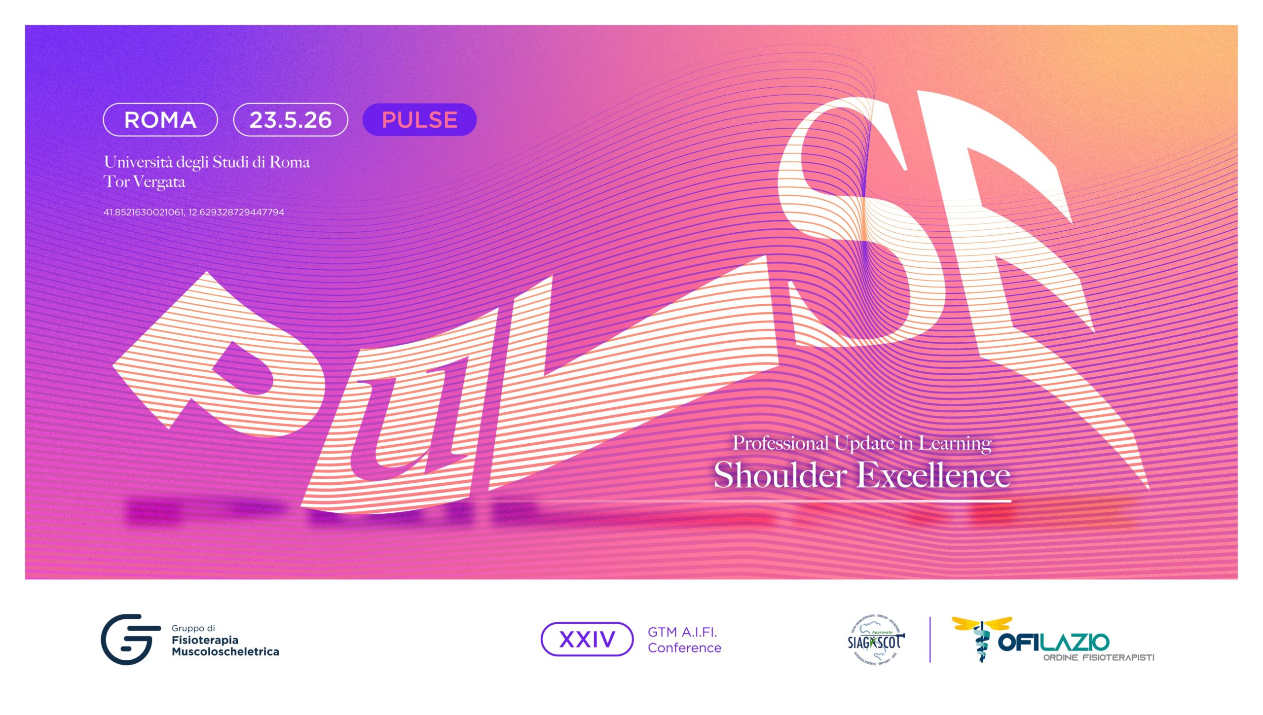 23 Maggio 2026 presso l’Università degli Studi di Roma Tor Vergata il XXIV GTM-AIFI Congresso “PULSE – Professional Update in Learning Shoulder Excellence”.